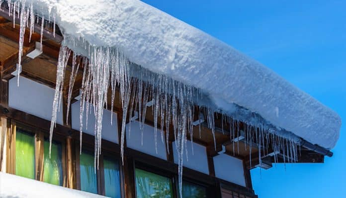 Drip line meltwater often creates a cycle within a single day. Sunlight melts snow on the roof. Runoff drips down, spreads, and then refreezes when the light fades or the air cools. That pattern can repeat several times. Each round lays down a smoother layer, and the slickness gets worse even if the patch looks the same.